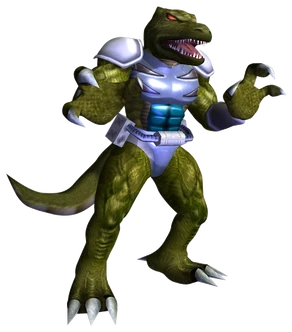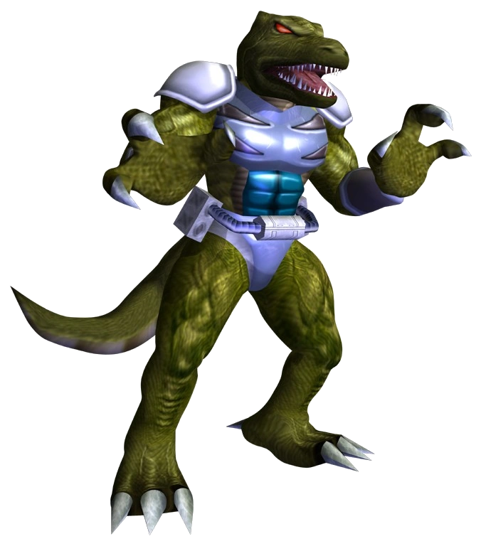 Bio Rex is a genetically engineered humanoid dinosaur who was created using a fossilized egg by the Keerlon Corporation. While Bio Rex has the intelligence of a human, he retains the aggressiveness of his carnivorous ancestors which makes him a very violent racer. Keerlon considers Bio Rex to be their crowning accomplishment and first entered Bio Rex into the F-Zero Grand Prix so that they could use him to gain widespread public attention. Unfortunately, Bio Rex caused them some bad press early on in his career leading the company to distance themselves from Bio Rex. Despite losing his corporate backing, Bio Rex continued to sign up for the Grand Prix in order to prove his own superiority over humans.