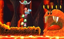 As a fighter approaches the Blargg's location, it will ceremoniously make itself known, leaping several feet upwards and remaining stationary in the lava. Edge a little closer, and the Blargg will propel itself forward. Its only mode of attack is this primordial slam, endowing opponents with flames and decent knockback should they be hit. Once the Blargg reaches the end of its arc, it will dissipate back from whence it came, reappearing moments later once the fighter is back within range to summon its presence. Blarggs can rarely be beaten, given their fiery properties and quick pace, so fighters will have to do their best to treat them as obstacles and evade them. Blarggs come in a variety of sizes, but can grow to roughly the size of Giga Bowser at their height.