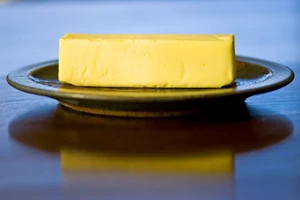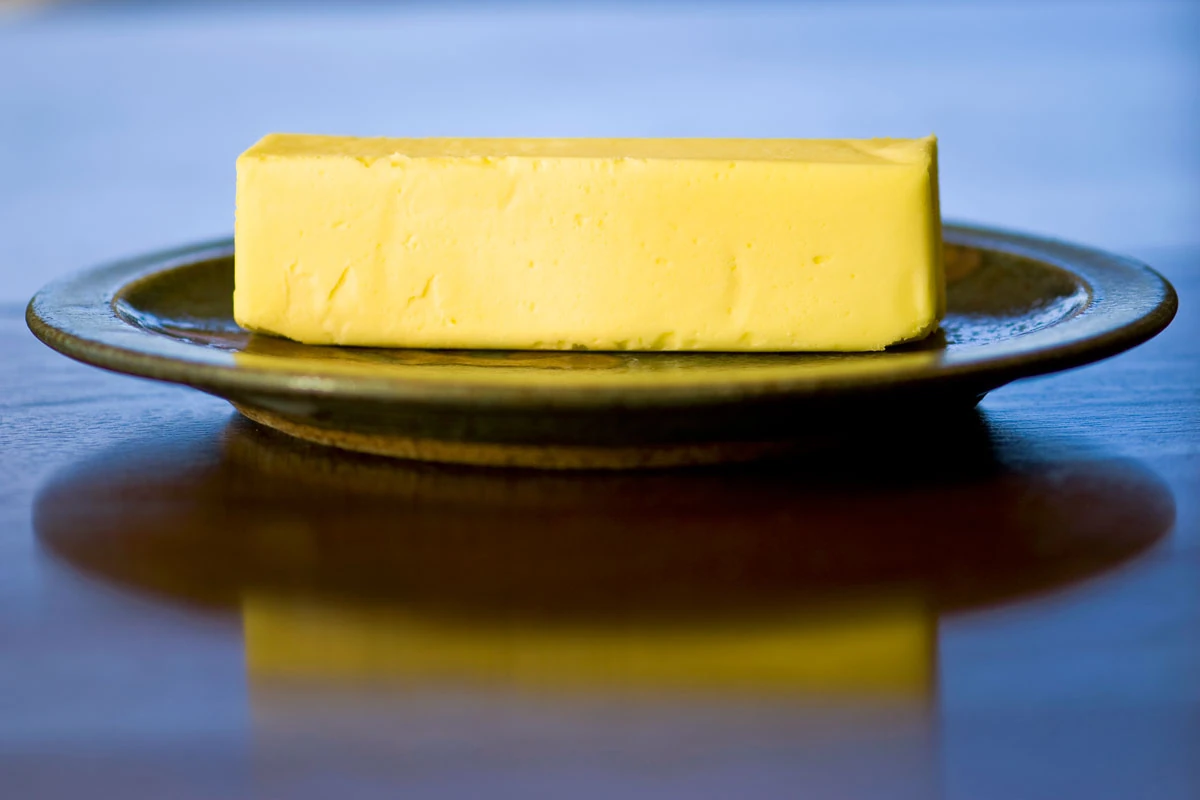 Butter is a dairy product made from the fat and protein components of churned cream. It is a semi-solid emulsion at room temperature, consisting of approximately 80% butterfat. It is used at room temperature as a spread, melted as a condiment, and used as an ingredient in baking, sauce making, pan frying, and other cooking procedures.