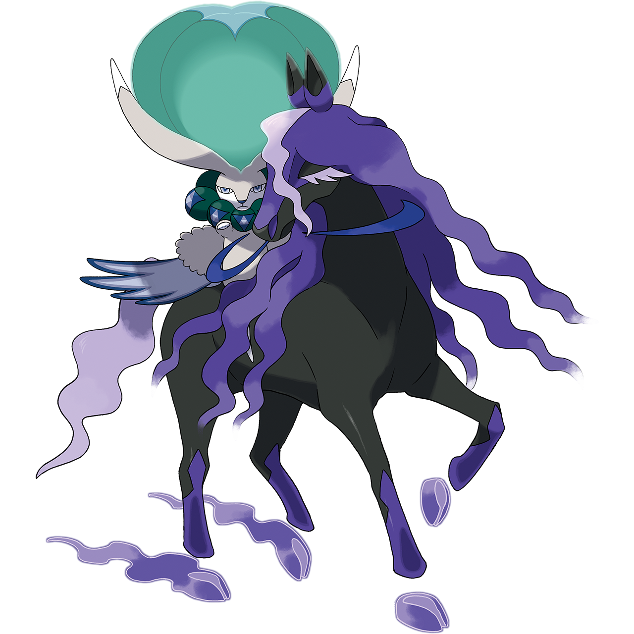 A Legendary Pokemon who was once revered as a king in Ancient Galar. Calyrex was known to be merciful and would provide both blessings and healing to its people. With its great powers it could even bring life to plants and even heal hearts. In modern Galar however Calyrex has lost a great deal of its power as the people no longer believe in its existence. Even Calyrex itself cannot recall which Pokemon was once its great steed between Glastrier and Spectrier.