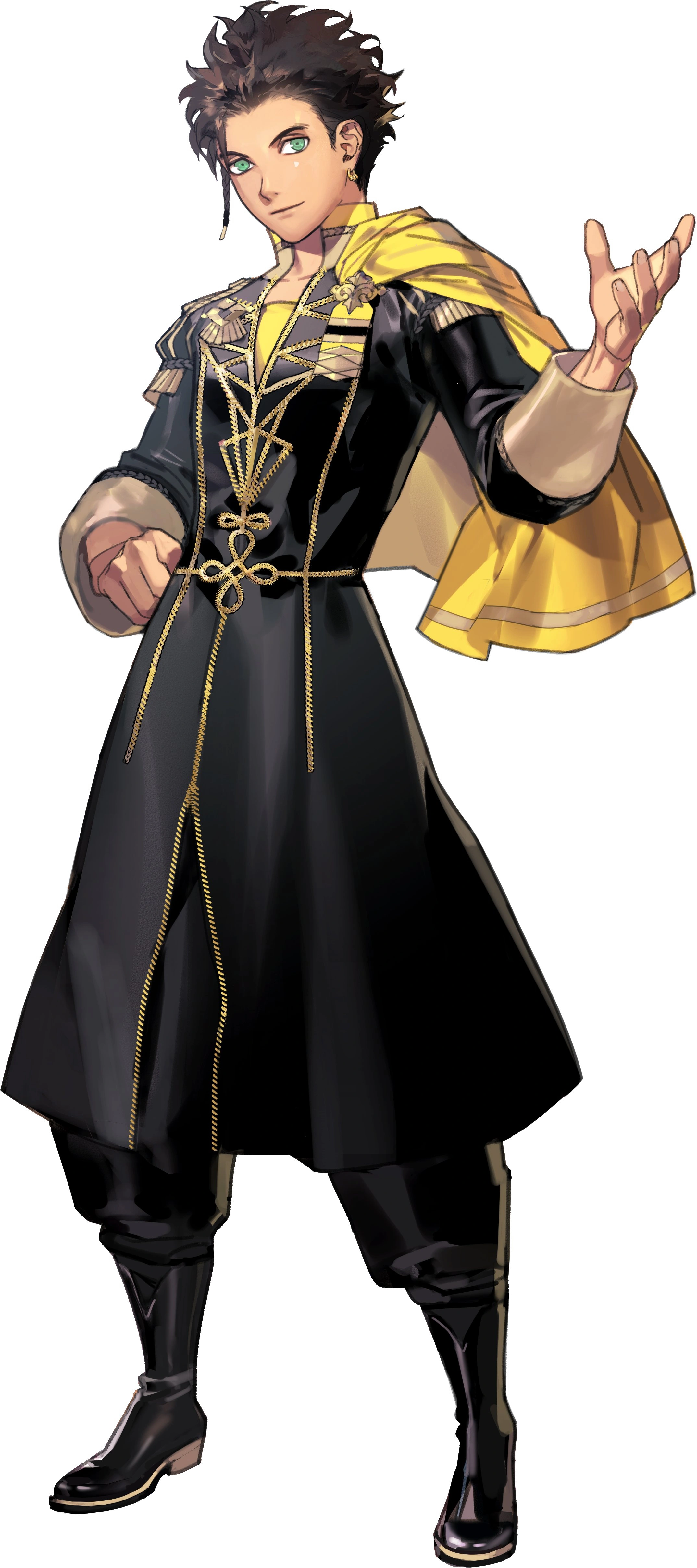 Claude von Riegan is the heir and, later, leader of the Leicester Alliance. In the Officers Academy, Claude leads the Golden Deer, who come together 5 years after their training at the Academy to defeat Edelgard and Those Who Slither in the Dark. Graced with an easygoing charm, Claude is known as an affable, natural leader, as well as a master strategist and trickster. His aloof nature begets his more astute qualities, which assist him and the Leicester Alliance on their path throughout Verdant Wind. He is primarily a bow user and wields the legendary bow, Failnaught.