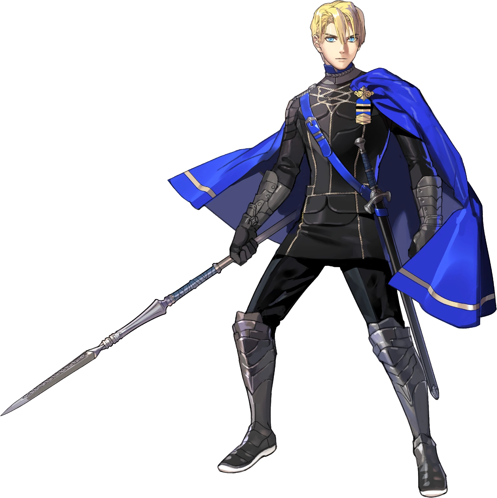 Dimitri is the prince and, later, king of the Holy Kingdom of Faerghus. In the Officers Academy, Dimitri leads the Blue Lions, who come together 5 years after their training at the Academy under two primary goals: to collaborate with Claude to defend the Church of Seiros against the onslaught of Edelgard and Those Who Slither in the Dark, and working to reunite Dimitri's fractured kingdom. Driven mad by Faerghus' rule in the Tragedy of Duscur, he saves and befriends a Duscurian who later becomes his vassal, Dedue. He is primarily a lance user and wields the legendary spear, Areadbhar.