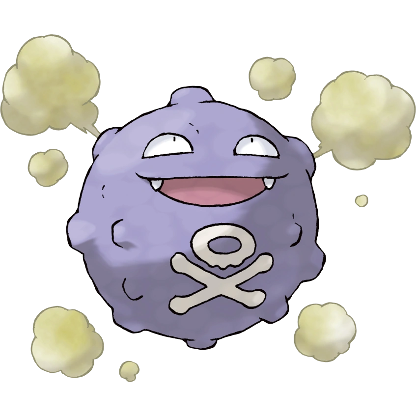 A Poison-type Pokemon native to several regions across the PokeWorld. Spherical in shape, Koffings are filled to the brim with toxic gases which they release through the protrusions along their body. The gas they keep inside them is actually lighter than air which is what allows them to float. They flourish where air pollution is at its strongest as they feed on the fumes. While most Koffings evolve into the pure Poison-type Weezing, it seems that in the Galar region they gain the Fairy-typing upon evolving.