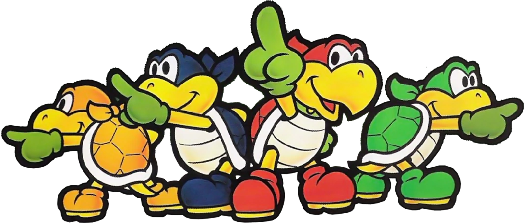 A quartet of costumed ninja Koopa Troopas who are members of Bowser’s Koopa Troop. They have a fortress of their own where they await Mario’s arrival in order to thwart him from rescuing Eldstar who Bowser left in their capable “care”.