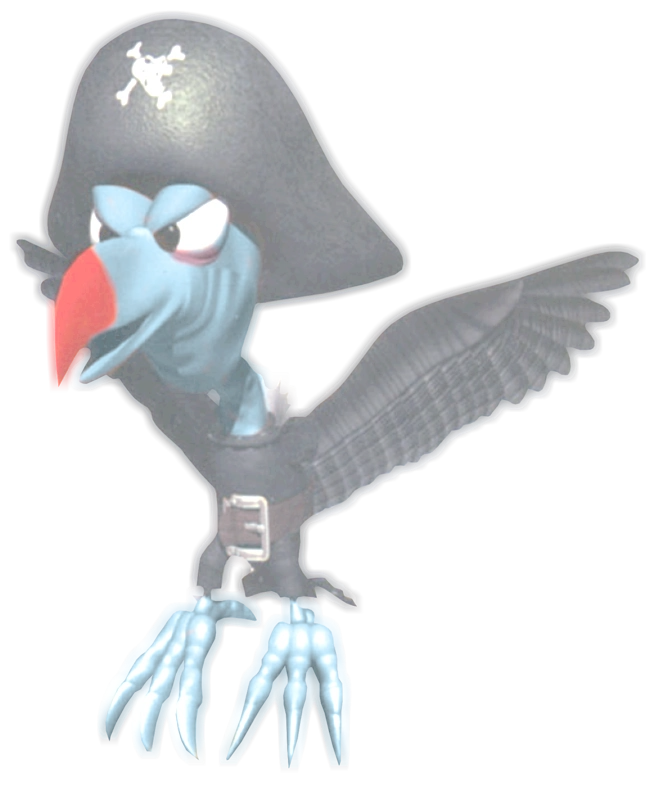 Flying past the ship's mast, Krow will grab one of the eggs from his nest which he has made in the mast and drop it down onto the stage to hurt the players. There are two types of eggs that can be dropped. Explosive eggs will explode on contact with either the player or the stage and cannot be picked up by the player. Bouncing Eggs will bounce in contact with the stage going in whatever direction they were already falling in. Bouncing eggs can be picked up by the players to try and throw back at Krow but you have to be careful as grabbing them from the wrong angle or moment can result in the player being damaged.
