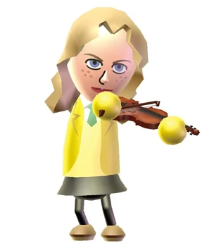 - The Mii Musician plays a short, elegant jingle and bows gracefully as red curtains draw shut behind them while the audience offers polite applause.