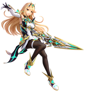 Mythra is the Aegis, a legendary Blade among Blades capable of immense power. She was originally awoken by Addam in order to stop Malos, the other Aegis, from destroying everything he could touch. After a mix of tragedy and a belief that the job was done, Mythra put herself to sleep only to be reawakened 500 years later by a young boy named Rex. As it turned out, Malos was back and Mythra was needed to help stop him once more, at her great reluctance.