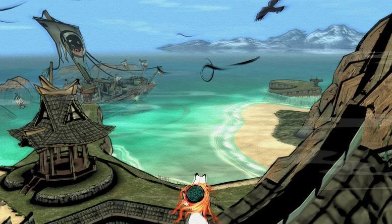 Ryoshima Coast is a picturesque coastline featuring in Okami and its sequel, Okamiden. In both Amaterasu and Chibiterasu's initial visits, the spacious vista holds a whisper of its beauty after befalling a terrible curse. Once its Guardian Sapling has been restored and its curse is lifted, it paves the way towards a multitude of important locales, including the Ankoku Temple, Sunken Ship, and Moon Turret. It connects Shinshu Field to Sei-An City.