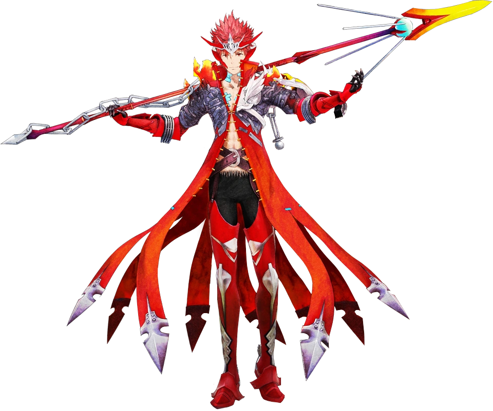 When Touma first arrives he’ll play to the camera and showboat a bit before diving into the action. Touma can run and jump around the stage as he attacks with his flaming lance with quick slashes. In between his slashes Touma may stay in place to rapidly stab his lance forward at a single target before a final thrust knocks them away. Before Touma leaves the battlefield he will always end things off with one of his As-lib Performances, Ouga Flame Thrust. This attack will have Touma backflips high into the air as he flips over and points his flaming lance downwards. Touma will then fall straight down (and carry any opponent he catches on the way) until he makes contact with the stage creating a fiery explosion vaguely in the shape of a bull. This final attack will always be aimed in the direction of a nearby opponent, but doesn’t strictly home-in on their location.