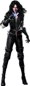 Yennefer of Vengerberg is a cunning sorceress who helped advise the Aedirn King, Demavend. She is the youngest member of the Council of Wizards, but by far its most powerful, and this scares them. Coming into magic from her time at Aretuza, she learns to hone-in on the powers of Chaos more than anyone in her time. She is Geralt of Rivia's true love and a mother figure to Ciri, as well as a close friend of Triss Merigold.